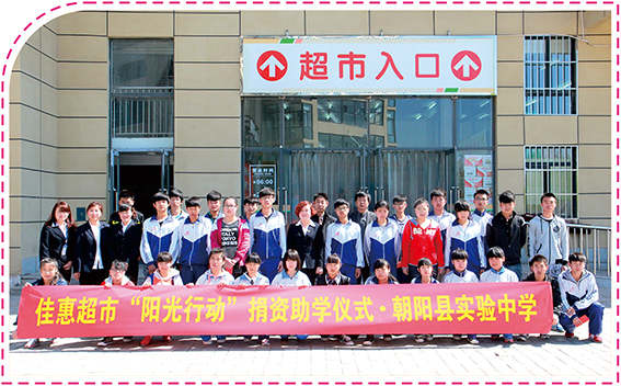 4月20日,上午9時(shí),北國(guó)的初春陽(yáng)光明媚,在副總經(jīng)理劉學(xué)慧的帶領(lǐng)下,佳惠超市有限公司一行5人帶著佳惠人的夢(mèng)想、責(zé)任、使命和感恩回報(bào)社會(huì)的火熱之心,踏上了去往朝陽(yáng)縣實(shí)現(xiàn)中學(xué)的路程。伙伴們此行將為實(shí)驗(yàn)中學(xué)的部分貧困學(xué)生送去佳惠“陽(yáng)光行動(dòng)”的溫暖。